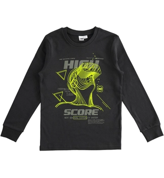 Koszulka z długim rękawem mięsista bawełna neonowy nadruk dla chłopca kolor czarny iDO