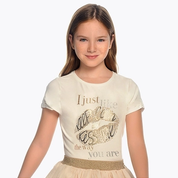 Koszulka krótki rękaw odsłonięte ramiona buty kwiaty kolor biały Mayoral dla dziewczynki