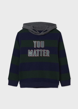 Bluza z kapturem w paski w kolorze butelkowa zieleń Mayoral dla chłopca