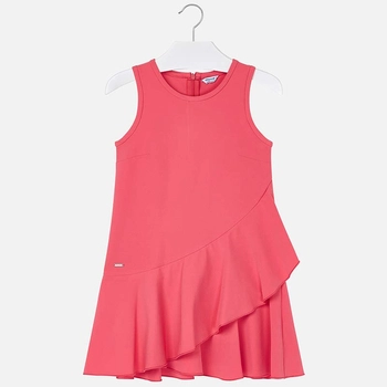 Sukienka wyjściowa z asymetryczną falbanką w kolorze koralowym Mayoral dla dziewczynki
