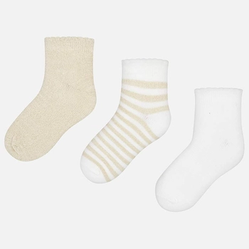 Komplet 3 pary skarpetek złoty, biały, paski Mayoral dla dziewczynki