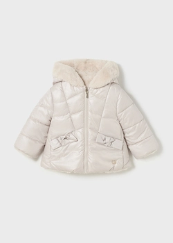Długa kurtka zimowa dwustronna Mayoral dla dziewczynki jasny beż
