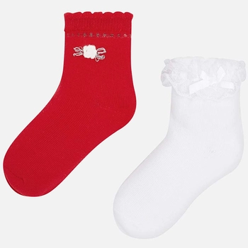 Komplet 2 par skarpet z falbanką w kolorze białym i czerwonym Mayoral dla dziewczynki