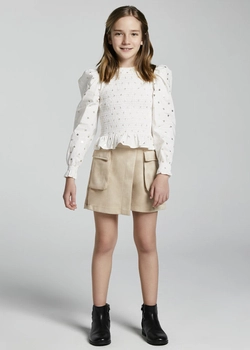 Szorty z paskiem serża basic kolor beżowy Mayoral dla dziewczynki