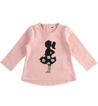Bluzka z długim rękawem mięsista bawełna baletnica dla dziewczynki kolor różowy cekiny iDO