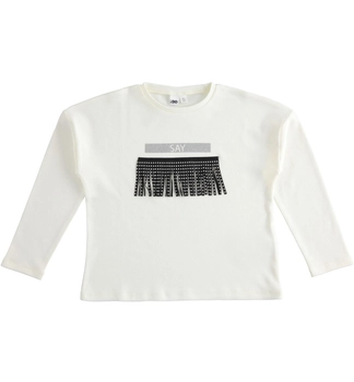 Koszulka z długim rękawem mięsista bawełna nadruk dla chłopca kolor śmietankowy iDO