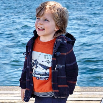 Płaszcz flauszowy z kapturem w kratę w kolorze granatowym Mayoral dla chłopca