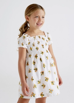 Sukienka z krótkim rękawem oraz pasujące majteczki kolor beżowy Jabłuszka Mayoral dla dziewczynki