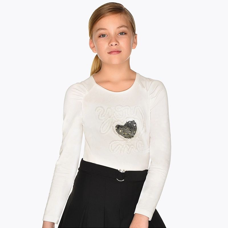 - Bluzka bawełniana z cekinowym sercem i tiulową aplikacją Mayoral, bawełniana.