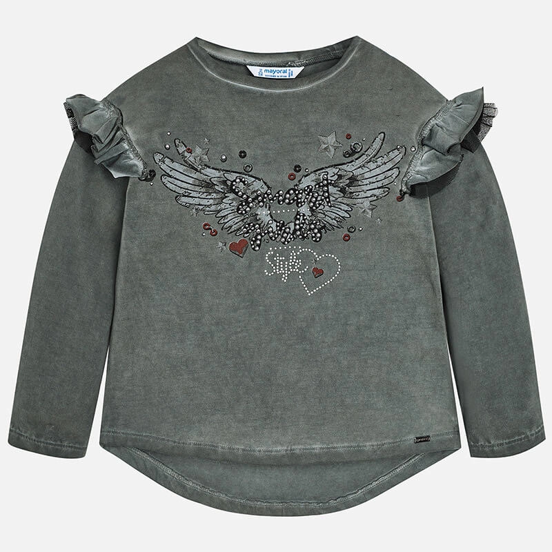 - Cienka bluzka z długim rękawem, rozszerzana na dole, tył nieco dłuższy, idealna do leginsów.
