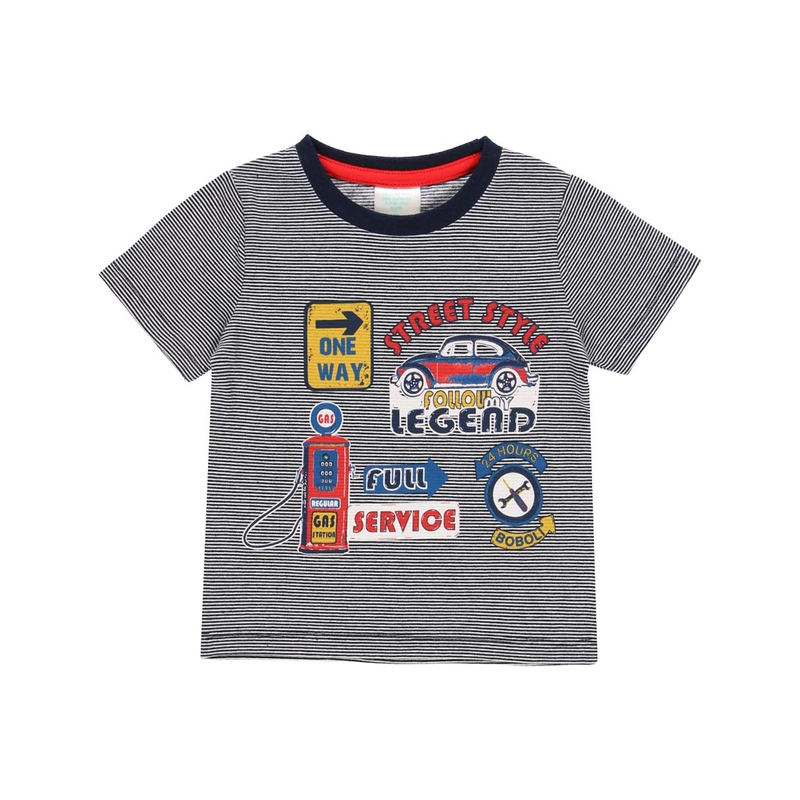 Bluzka z krótkim rękawem dla chłopca auta kolor granatowy Boboli