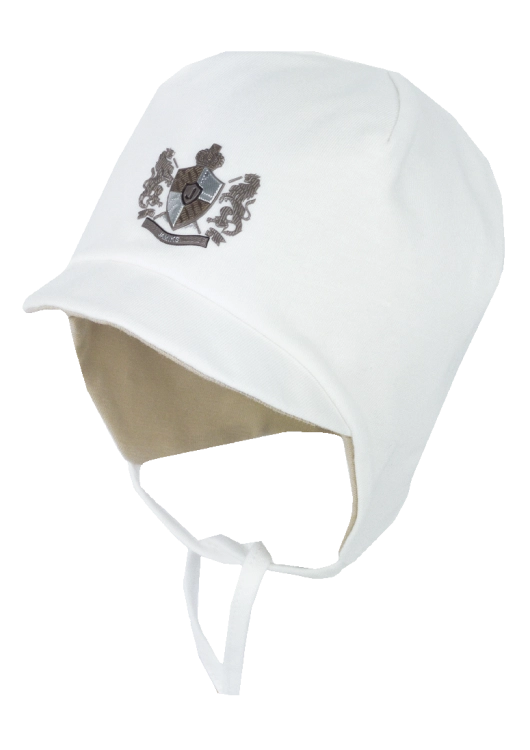 Chłopięca czapka niemowlęca wiązana z daszkiem kolor ekri - Jamiks