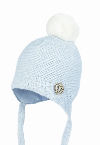 Czapka niemowlęca zimowa wiązana z pomponem dla chłopca Jamiks błękitna