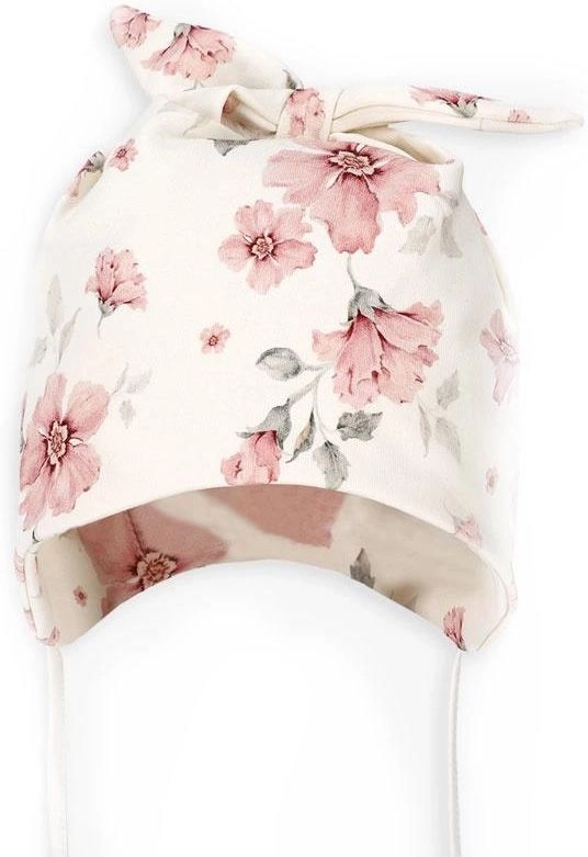 - Lekka czapka wiązana w kwiaty i z kokardą, bez podszewki.