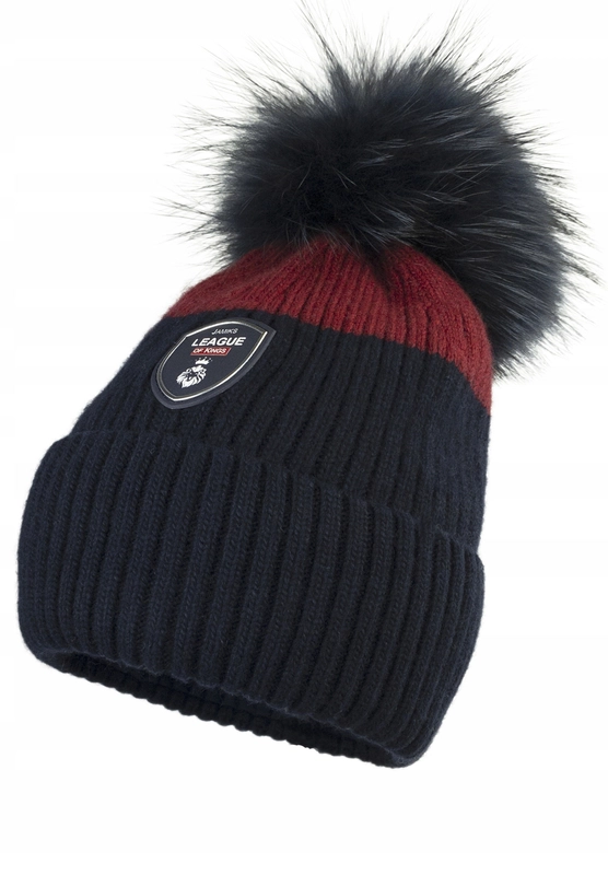 - Zimowa czapka na bawełnianej podszewce, z pomponem ze sztucznego futra, bardzo przypominającego jenota.