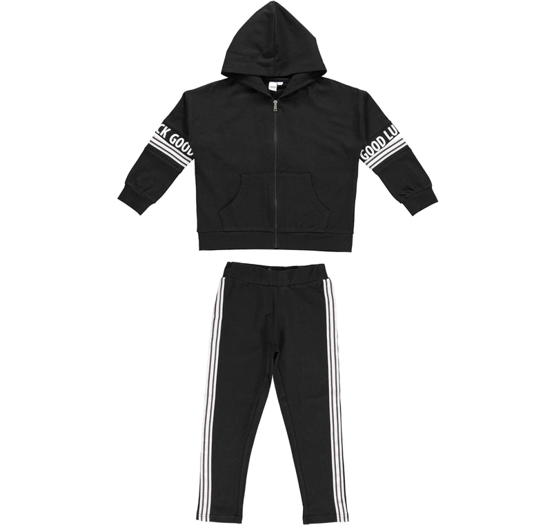Dres dwuczęściowy bluza z kapturem rozcięcia na rękawach spodkie kolor czarny iDO dla dziewczynki