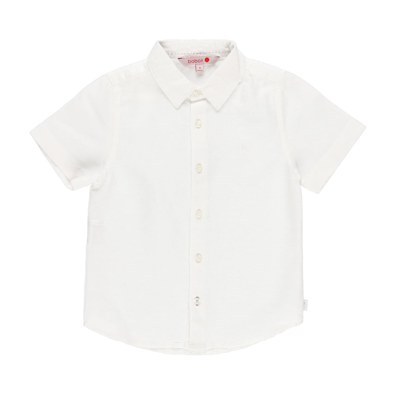 Koszula lniana Boboli z krótkim rękawem dla chłopca kolor biały