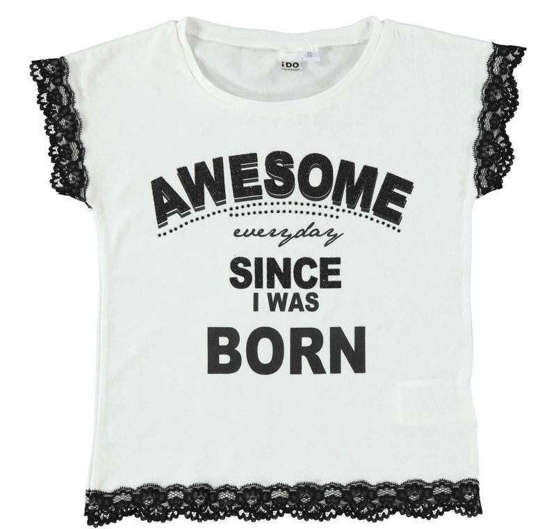 Koszulka krótki rękaw print koronka kolor biały iDO dla dziewczynki