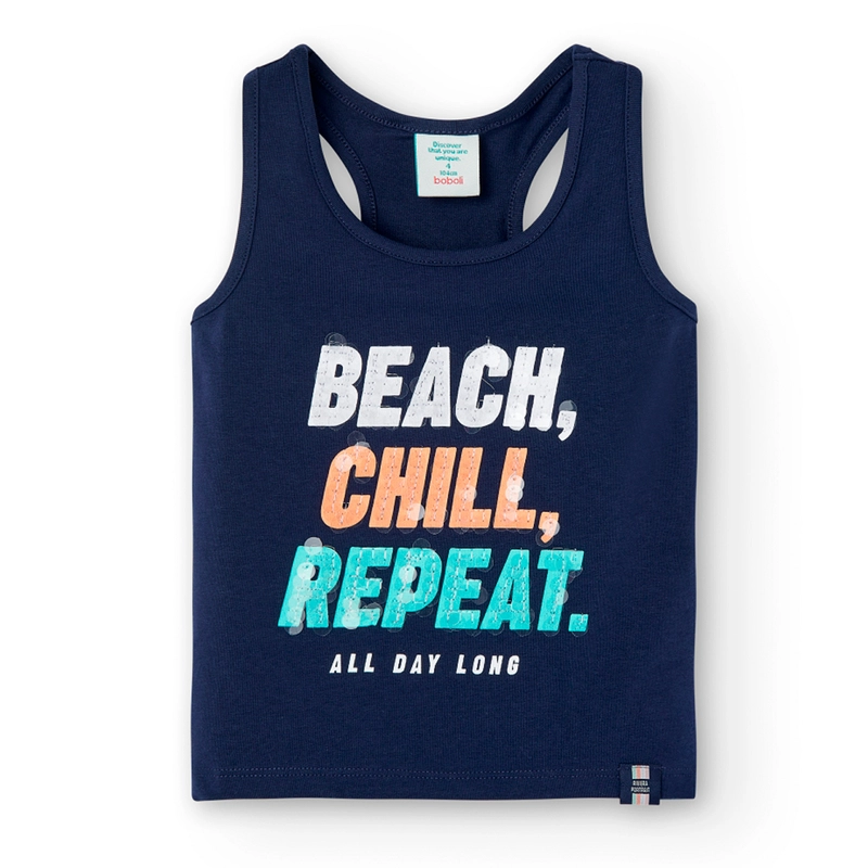 Koszulka na ramiączka typu bokserka napisy kolor granatowy Boboli dla dziewczynki