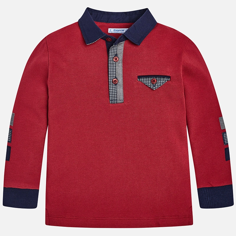 Koszulka polo długi rękaw kontrasty kolor bordo dla chłopca Mayoral