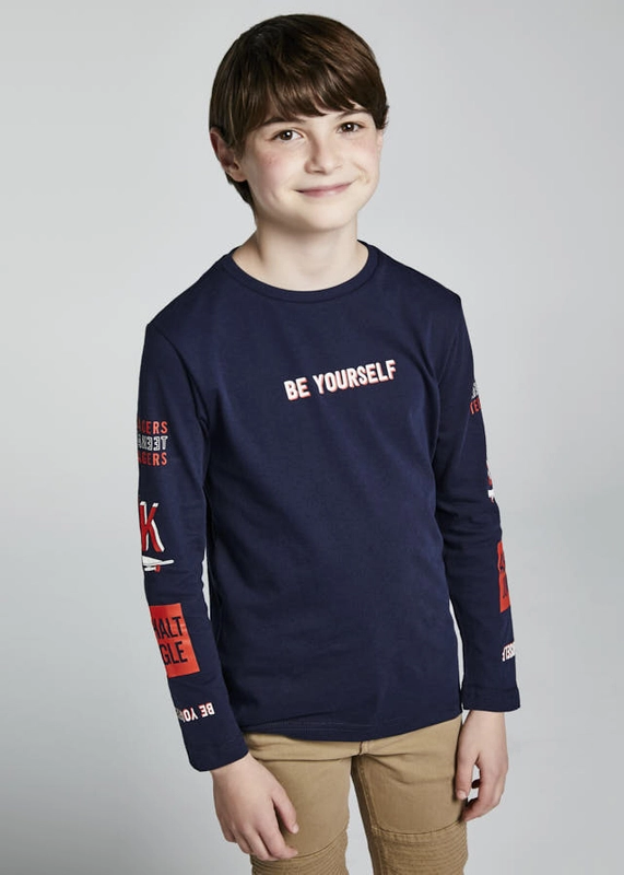 Koszulka z długim rękawem granatowa "be yourself" Mayoral