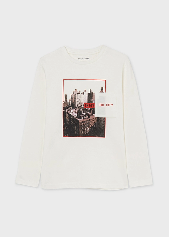 Koszulka z długim rękawem kremowa dla chłopca Mayoral "enjoy the city"