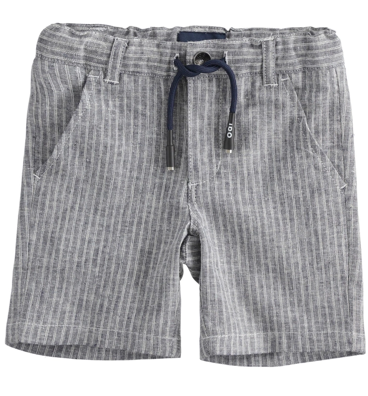 Krótkie spodenki bermudy len kolor granatowy w paski iDO dla chłopca