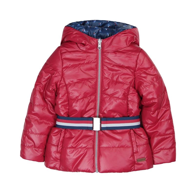 Kurtka ocieplana dla dziewczynki dwustronna z paskiem kwiatki kolor Bordowy Boboli