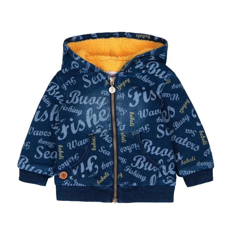 Ocieplana bluza rozpinana z kapturem statki kolor denim Boboli dla chłopca