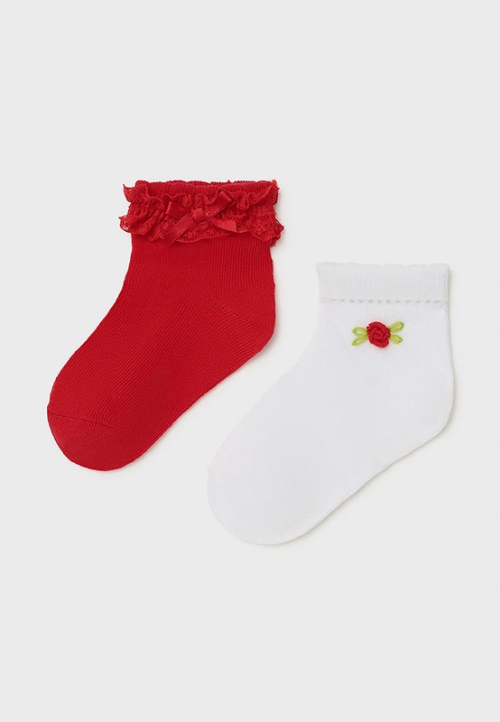 Skarpetki niemowlęce eleganckie białe/ czerwone Mayoral dla dziewczynki