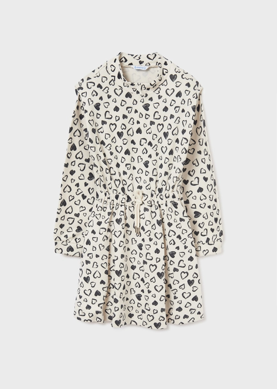 Sukienka dlugi rękaw serca dla dziewczynki kolor beżowy Mayoral