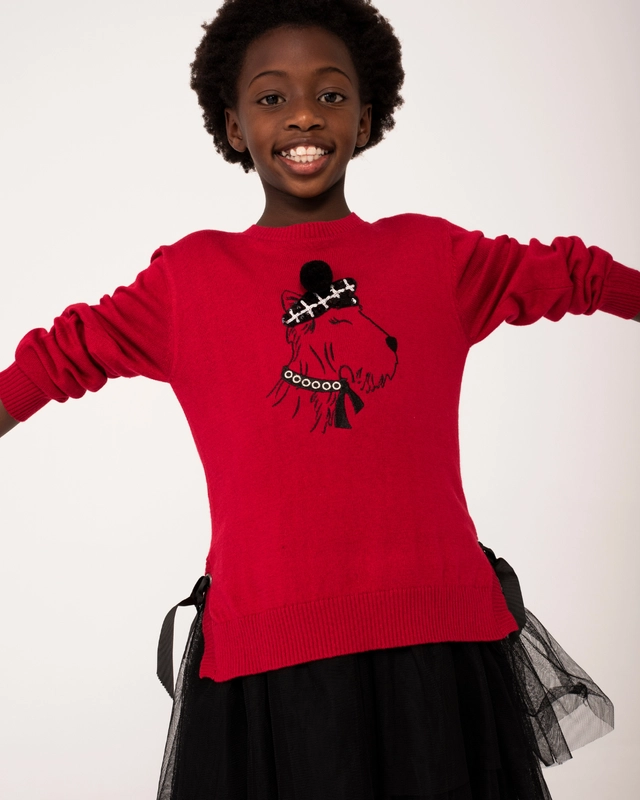 - Elegancka i stylowa dzianinowa sukienka przyjemna w dotyku z pieskiem i tiulową falbaną. Idealna, aby było wygodnie i stylowo.