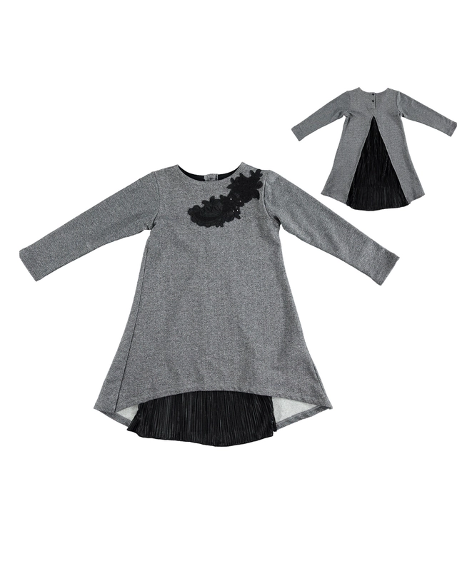 - Elegancka sukienka na przyjemnym meszku, dół z przodu krótszy, z tyłu dłuższy. Tył dodatkowo ma wszyty klinem plisowany zwiewny materiał, któy sprawia, że sukienka jest prosta, lecz niepowatarzalna.
