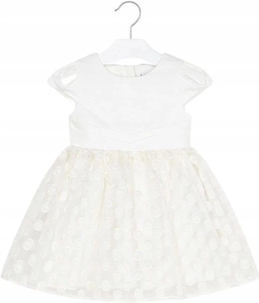 Sukienka elegancka z krótkim rękawem Mayoral kolor kremowy