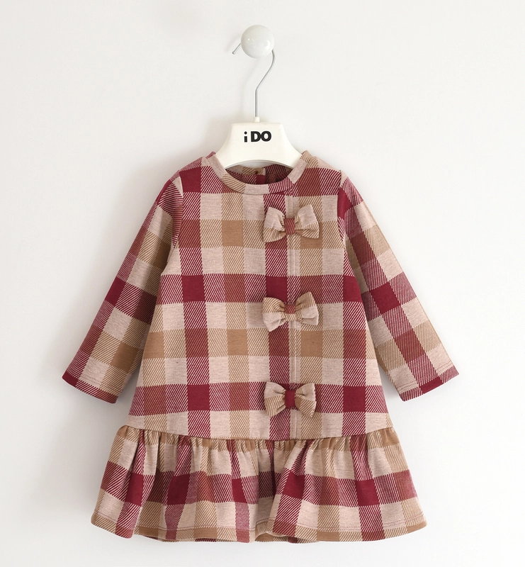 Sukienka w kratę z długim rękawem dla dziewczynki kolor beżowy iDO