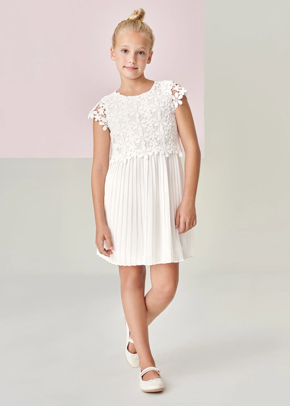 Sukienka wizytowa łączona z elementami gipiury kolor Kremowy Mayoral dla dziewczynki pokomunijna