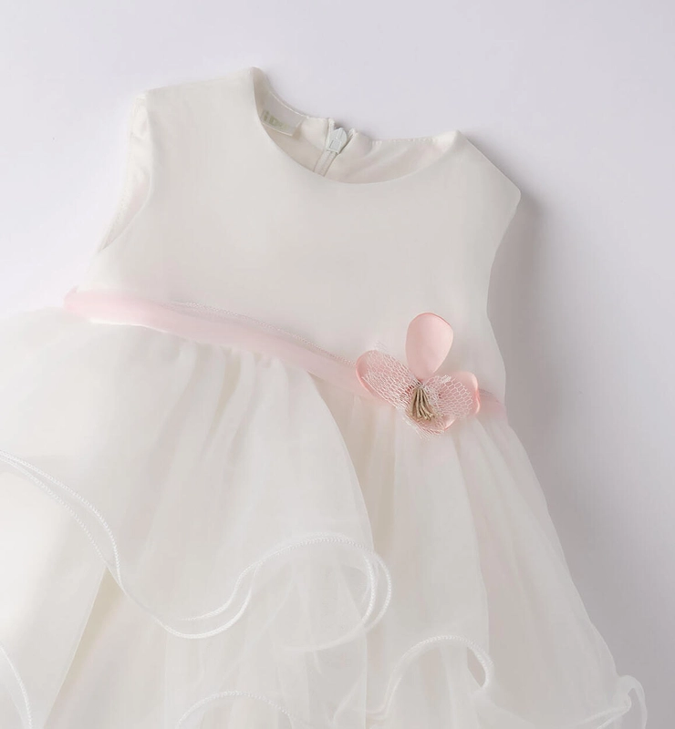Sukienka z falbanami na chrzest dla dziewczynki kolor kremowy iDO