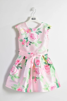 Elegancka sukienka wyjściowa w róże z paskiem kolor różowy iDO dla dziewczynki